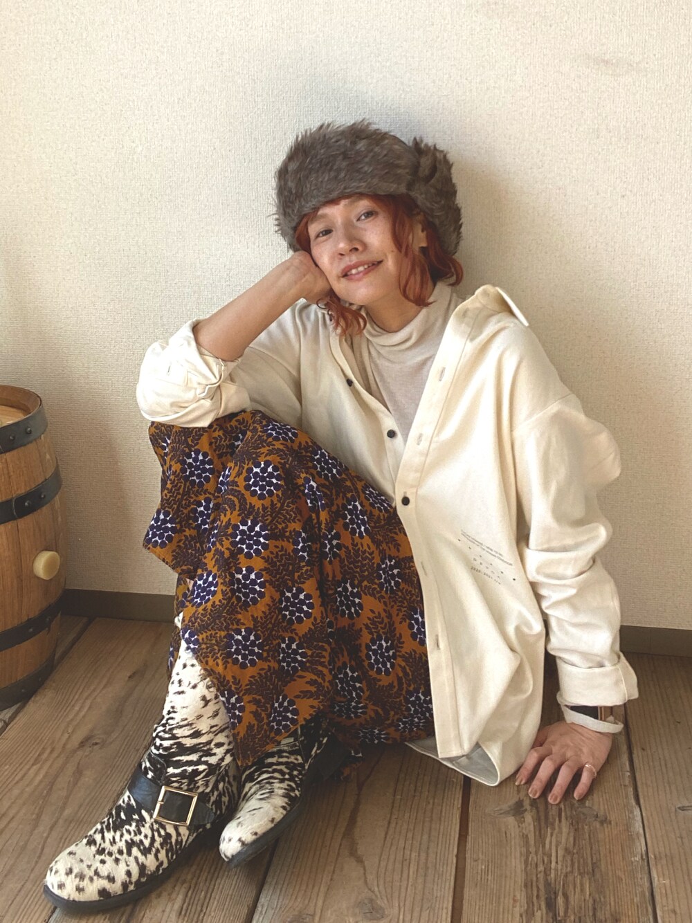 ten⭐︎ichiko のキャップ「フェイクファー ナイロン ファーハット / フライトキャップ / パイロット」を使ったコーディネート