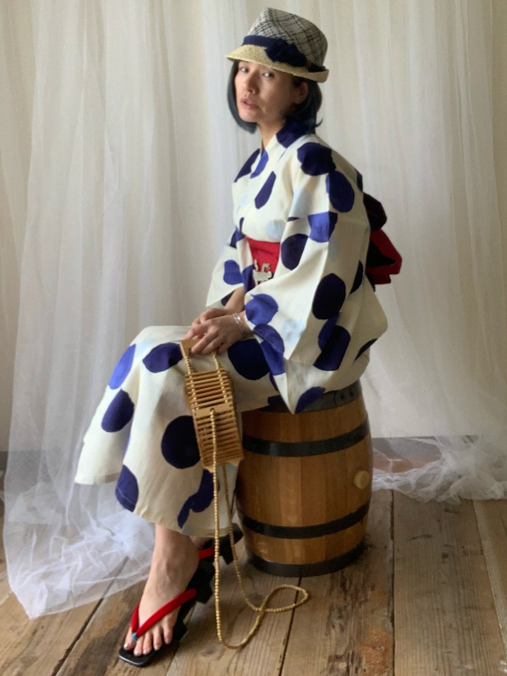 ten⭐︎ichiko のかごバッグ「丸型 かご バッグ 2way」を使ったコーディネート