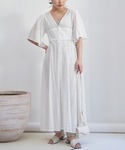 ホワイト系のワンピースを着用したレディースの夏コーディネートの2枚目の写真