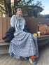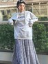 ten⭐︎ichiko のスカート「ギンガムチェック/無地ボリュームフレアマキシスカート」を使ったコーディネート