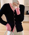 ten⭐︎ichiko のカーディガン/ボレロ「バイカラー襟・袖配色Vネックニットカーデ」を使ったコーディネート