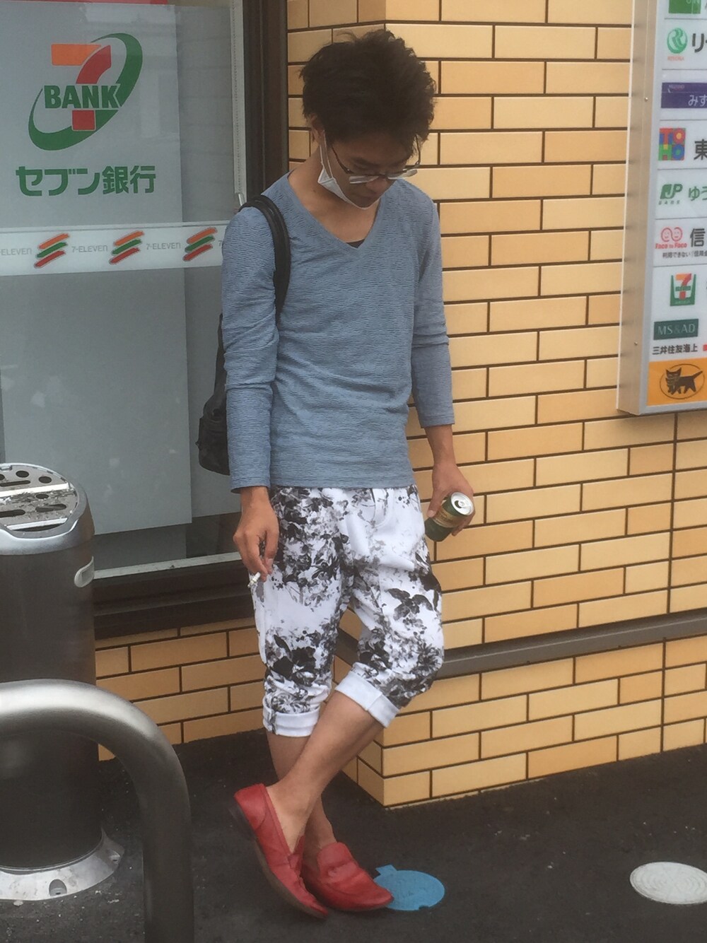 外撮りってやっぱいいですね 実際にどう見えてるか、よくわかる このパンツ、履くと途端にお祭り野郎になりますが、僕は好きです、大好きです とにかく楽! 後、去年の冬セールで勧めていただいた、ブルーのタックシャツ着てみました 全体的にゆる〜い系ですが、それがまたいい ファッションなんて自己満ですよ、はい