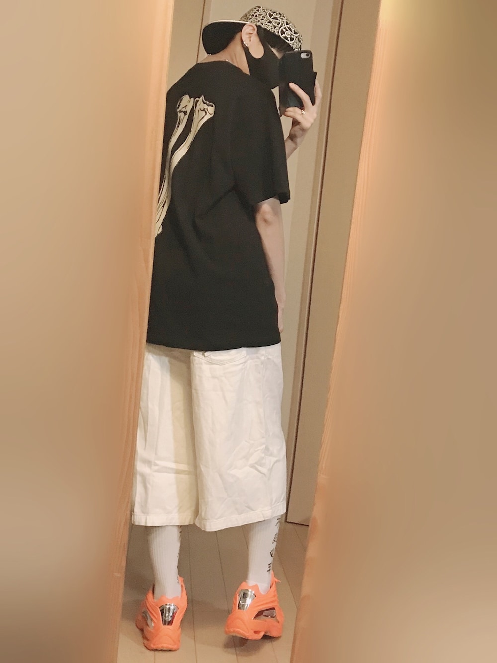 4月に先着予約で買った NOCTAのHot Step 2 です☺️ 今日はコイツを中心に組んだ コーデを紹介します! とにかくめっちゃオレンジなので これを引き立たせるために、 白いソックスとショーツで ボトムスを明るい軽色で統一して、 トップスは黒Teeで合わせました! 上に黒を持ってくることによって、 下半身の明るさが強調されるので 足元のオレンジにつられて ついついスニーカーに目が行っちゃう というような視線誘導を意識した 配色になっています! ちなみに今回はワイドパンツで合わせていますが、 サルエルパンツでも可愛いシルエットに仕上がりました! (最後の画像) あとはベルトに黄色のOWで ちょっとアクセントを入れてみました!