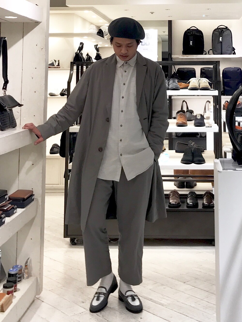コンビネーションの利かせ方が絶妙なバランスです。他には無いローファーながらも合わせてはしやすいです。『靴知ってるなー』感出せます! グレーのセットアップ ロング×ワイド japanese shoes factory!!!! “alfredoBANNISTER” @SHINJUKU LUMINE EST SHINJUKU 4F ☎︎0363800310