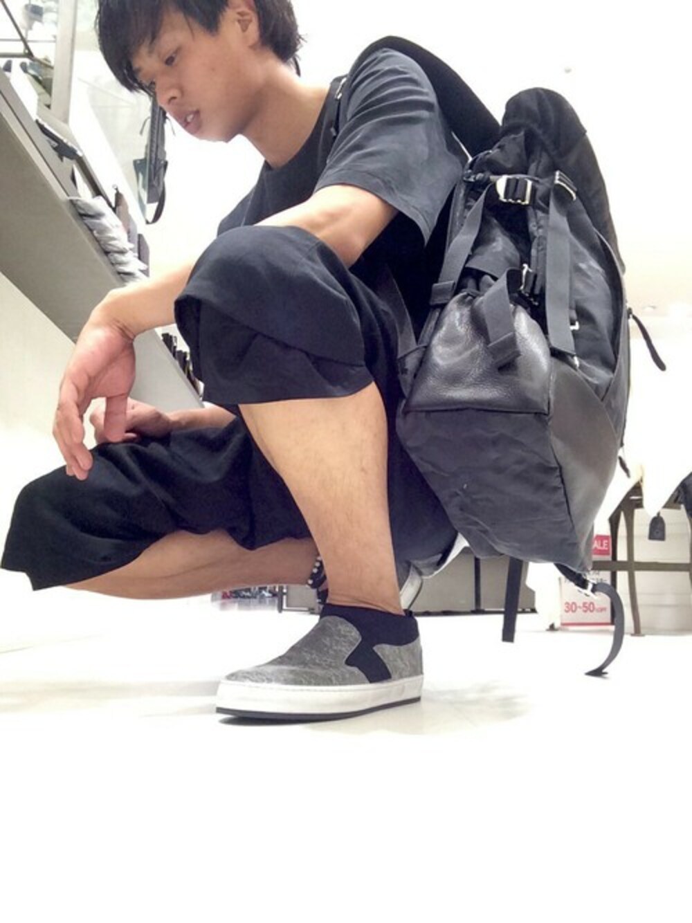 ★秋の立ち上がり楽しみコーデ★ あと少しで秋物も立ち上がるので、立ち上がる前の写真をUPしました! 10日位経ったら中腰位になってるかもしれませんwww このレイヤードを利かせたスニーカーはSEESAWというブランドの物履いてみました。 脱ぎ履きがラクになるよう履き口のかかと部分にはゴムが内蔵されています。 デザインもですが、革質も初めからこなれた印象のある物を使用しているのでかなりカッコイイです。 バックパックはお馴染みのDECADEから新作で出てきました迷彩ブラックの金具がシルバーになっている別注アイテムです。 今買って秋もしっかりでオススメキーワードですので是非CHECKしてみて下さい☆
