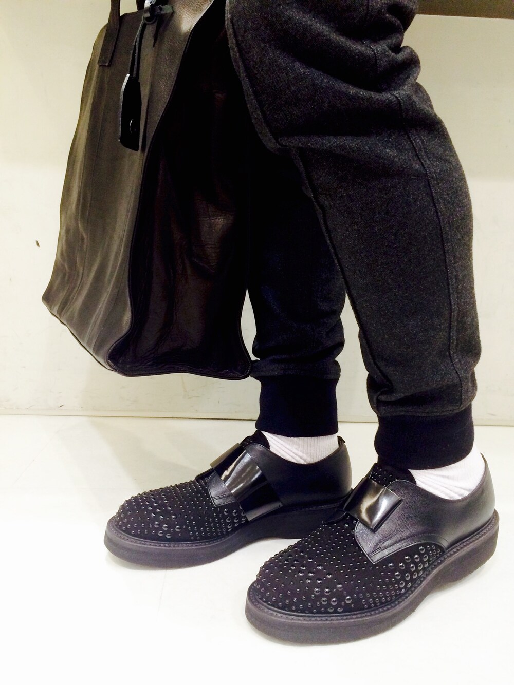 新作が2つ入荷しましたので早速! 別々のブランドなのに雰囲気や系統が同じ物が同時に納品されたんでタイミングの良さにまずビックリ!w そしてこのスタッズ付ラバーソールの履きやすさに2ビックリ目です!思ったより軽く足入れが良い。 バッグもそーとーオシャレです!小窓も覗いてみてください。 今日から3連休!マルコとマルオで全品10%OFFしてますので是非いらしてください! これ履くなら、これを持つ!をお届けいたしましたww