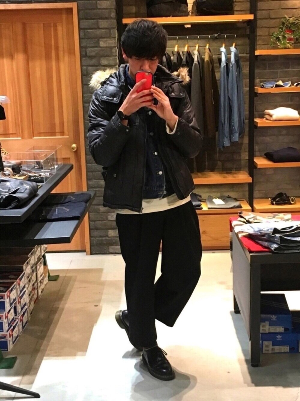 こんにちは! 最高,最低温度🌡共に10度以下の日で寒かった時のコーデです(づ ̄ ³ ̄)づ 今回はボアのダウンジャケットにGジャンを中に入れてアウターの重ね着してみました!!👕 そして、パンツには2つ前のコーデをup📷✨した時に買った...黒のワイドパンツで合わせてみました!!👖なかなか間が空いてしまい、すみません。笑 またこれからも少しずつ投稿していくのでよろしくお願い致しますm(_ _)m フォロー,いいねetc…押して貰えると嬉しいです!! 見ていただきありがとうございました!!