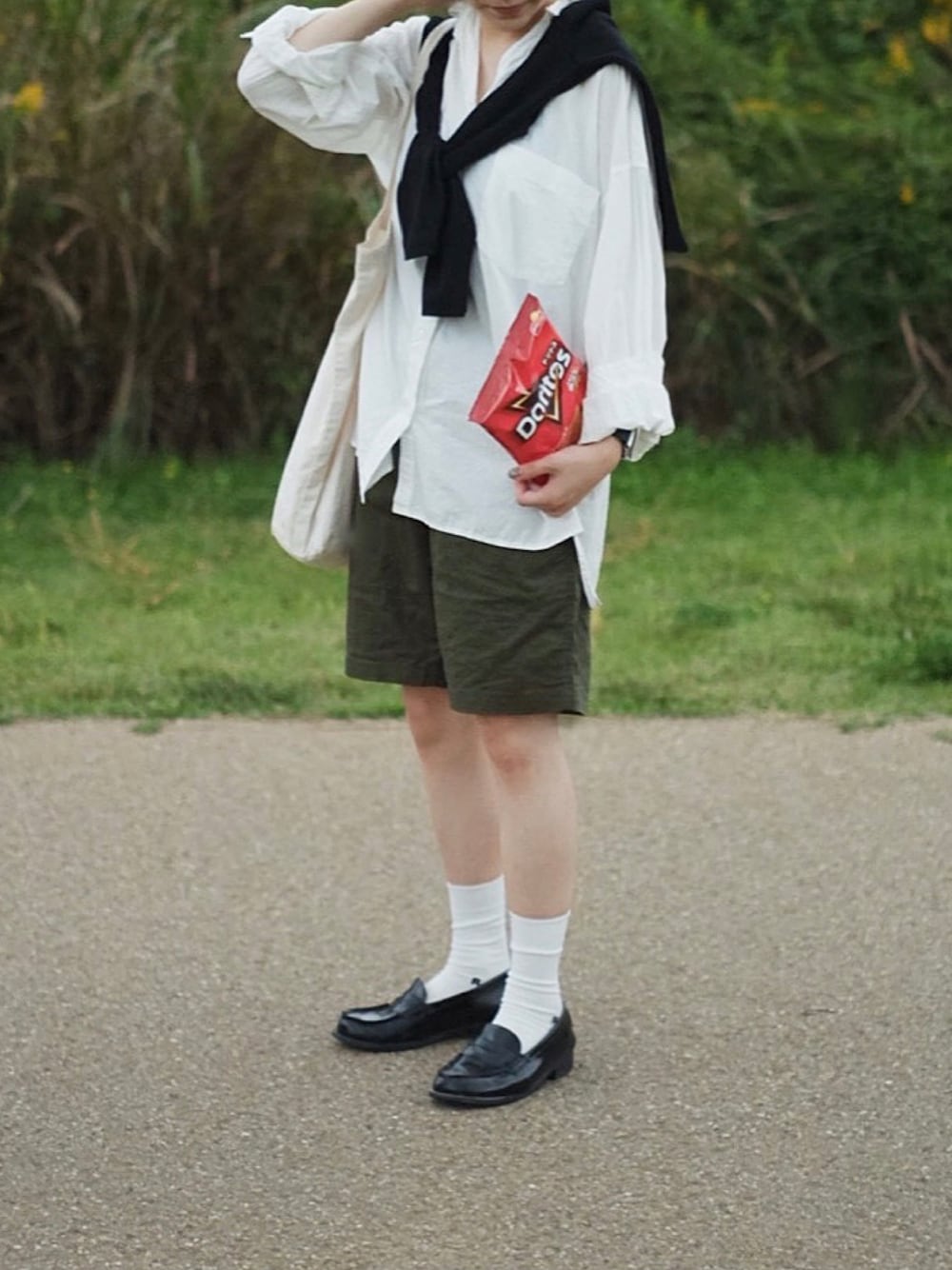 ファッジみたいなパリの女の子の休日みたいなイメージ🧥🧳 UNIQLOのメンズハーフパンツはSサイズなら152cmの私でも膝丈で着れます◎
