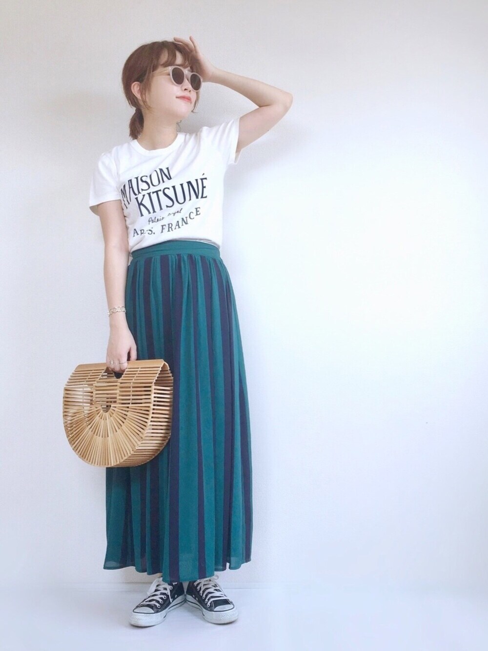 ROPE' PICNICのストライプのスカートは夏に着たくなる濃いめのカラーが可愛い♡ 新たに購入したシルバーアクセたちもかなりお気に入り♡ インスタ→terawear ブログ→プロフィールからとべます!