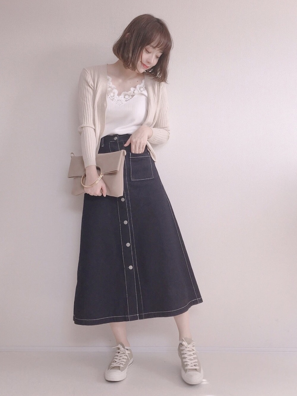 てらのキャミソール「Vネックレースキャミニット」を使ったコーディネート