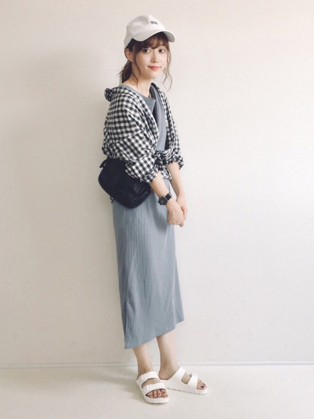 てらのワンピース「バックデザインリブワンピース」を使ったコーディネート