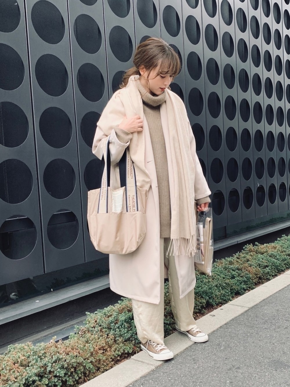 お気に入りのアイボリーのコート♡ titivate&ur's の受注会行った時のコーデ。 てろてろパンツやスカートの時は、 必ずあったかいインナーをはきます。笑