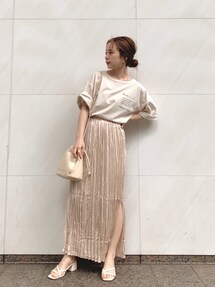 シンプルコーデにデカバッグ👜 サマーニットがサラサラで気持ち良くて すっきり大人っぽく見える…♡ これはヘビロテの予感です。