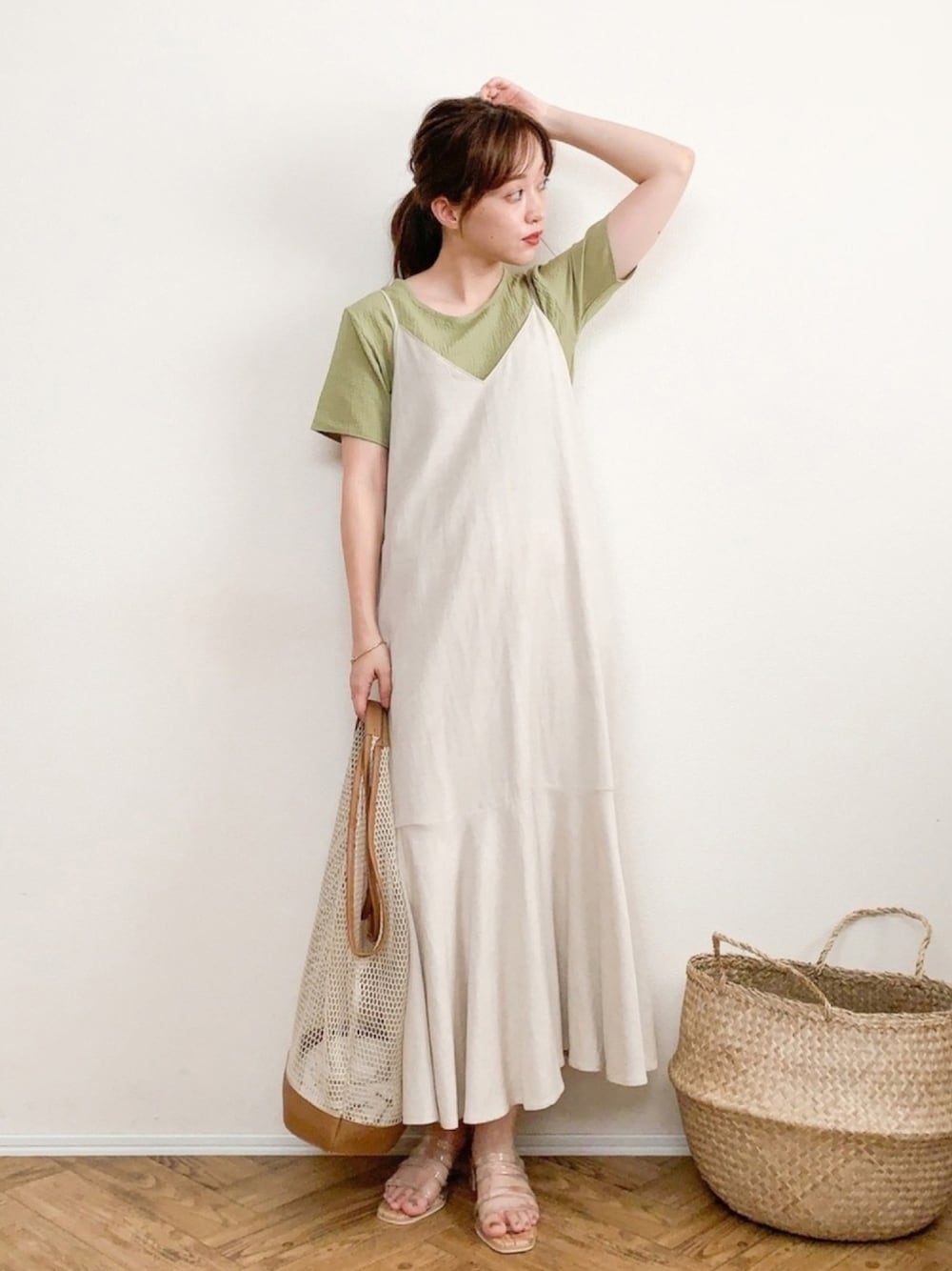 てらのワンピース「ウォッシャブルリネンブレンドキャミワンピース 【AUNT MARIE’S】」を使ったコーディネート