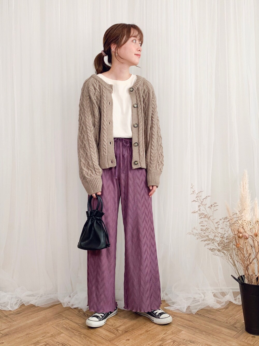 slowmellyの大人気アイテム♡ 変形楊柳ワイドパンツのパープルに、 GUのカーディガンXLサイズを合わせました♡ 楊柳パンツは今だけでなく春夏も活躍してくれそうです🧚♀️ お買上げいただいた方からも、 可愛くてはきやすいとご好評いただいております🥰✨ ぜひチェックしてみてくださいね❤️ 即完売したパープルも再販しております!