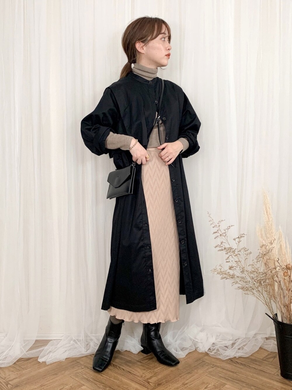 ユニクロのタートルニットにすろめりスカート♡ 上下タイトなのでコートにもなるワンピを羽織って程よくカバーしました◎