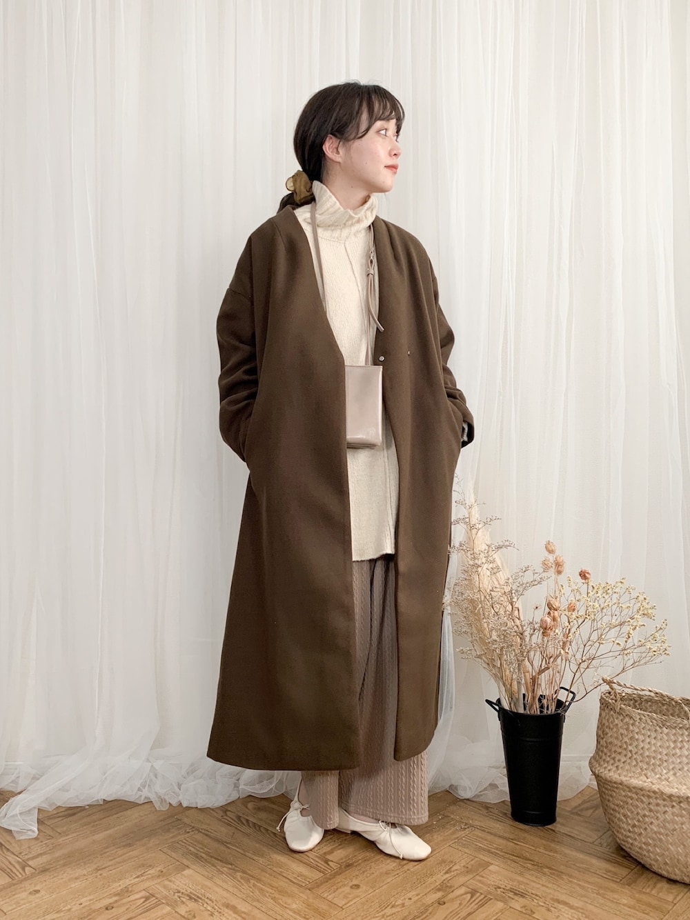 てらのノーカラーコート「ノーカラーメルトンコート / Aunt Marie's」を使ったコーディネート