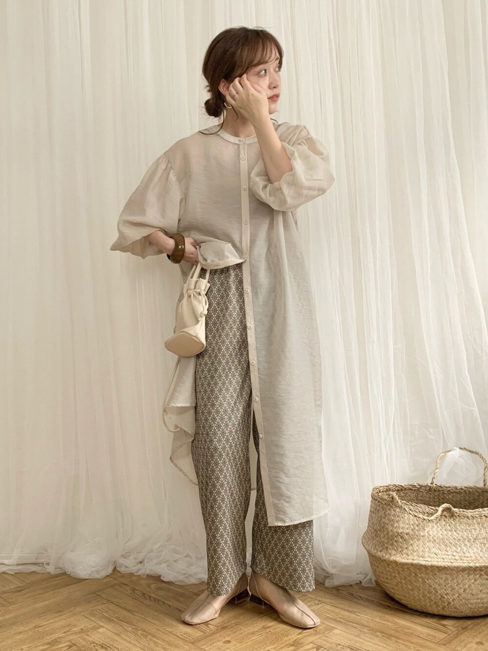 terawearemu新作シアーワンピは ファッションセンターしまむらにて販売中です♪♪ パンツもしまむらの2PINKのもの♡ シアーと柄…このコーデお気に入り過ぎる…