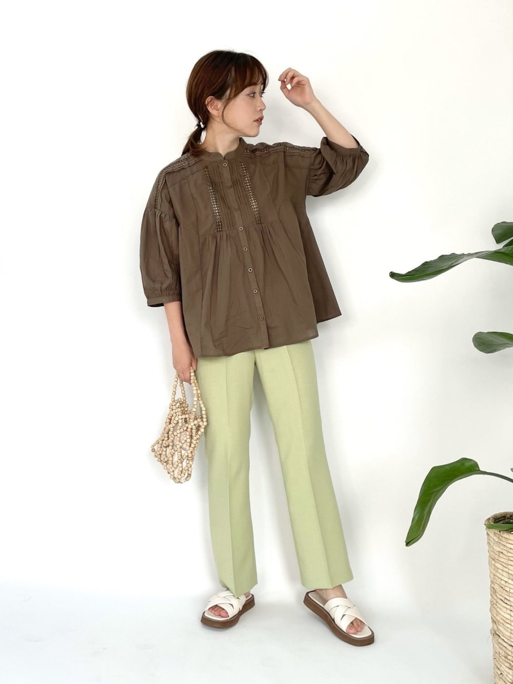 梯子レースコットンブラウス カーキを着用してます😌 前も後ろもギャザーたっぷりで可愛さもありつつ、 スタンドカラーでモード寄りなデザイン…🥺❤️ あえての濃いめカラーも大人っぽくておすすめです✨ 本日zozoクーポンが出ててお得に買えるのでぜひチェックしてみてください🙆♀️✨
