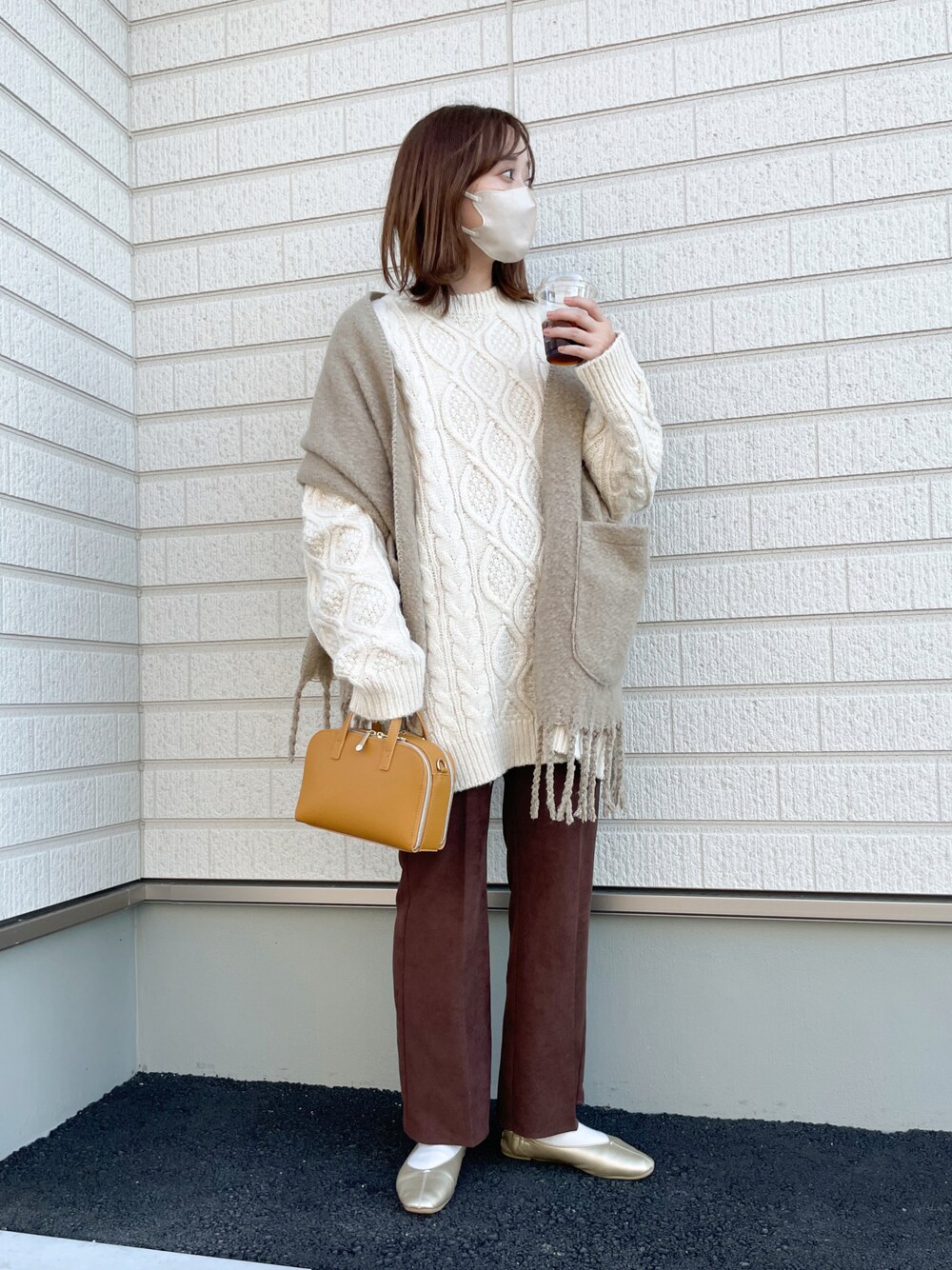 今日のコーデ♡ 朝起きて、このバッグとストールを使いたい!と思って考えたコーデ♡ 靴をゴールドにして、 ほっこりしすぎないようにしたのがポイント🥰