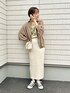 タイトスカートをはくと 気になってしまう腰まわり… この袖フリルシャツを羽織ると 袖フリルのボリュームや身幅のあるシルエットのおかげで 下半身が細くすっきり見えてくれるので 春夏の羽織りにおすすめです!😆💕 Tシャツのロゴとスニーカーの色をリンクさせてみました💚 《フリル袖シャツ》しまむら(terawear emu) 淡茶/Mサイズ(品番:516-1319)