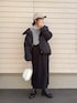 #PR(terawear emu) ブラック×グレー🩶🖤 白のファーバッグを持ちたかったのですが 紐がベージュだし、淡色小物感が強め。。 このコーデに1点だけベージュが入ってくるのはさすがに唐突過ぎるかな〜って 個人的に気になったので キャップもベージュにして馴染ませました🧢☺️笑 やっぱりこの中綿ジャケットに カーゴスカート合わせいいな〜🤔❤️