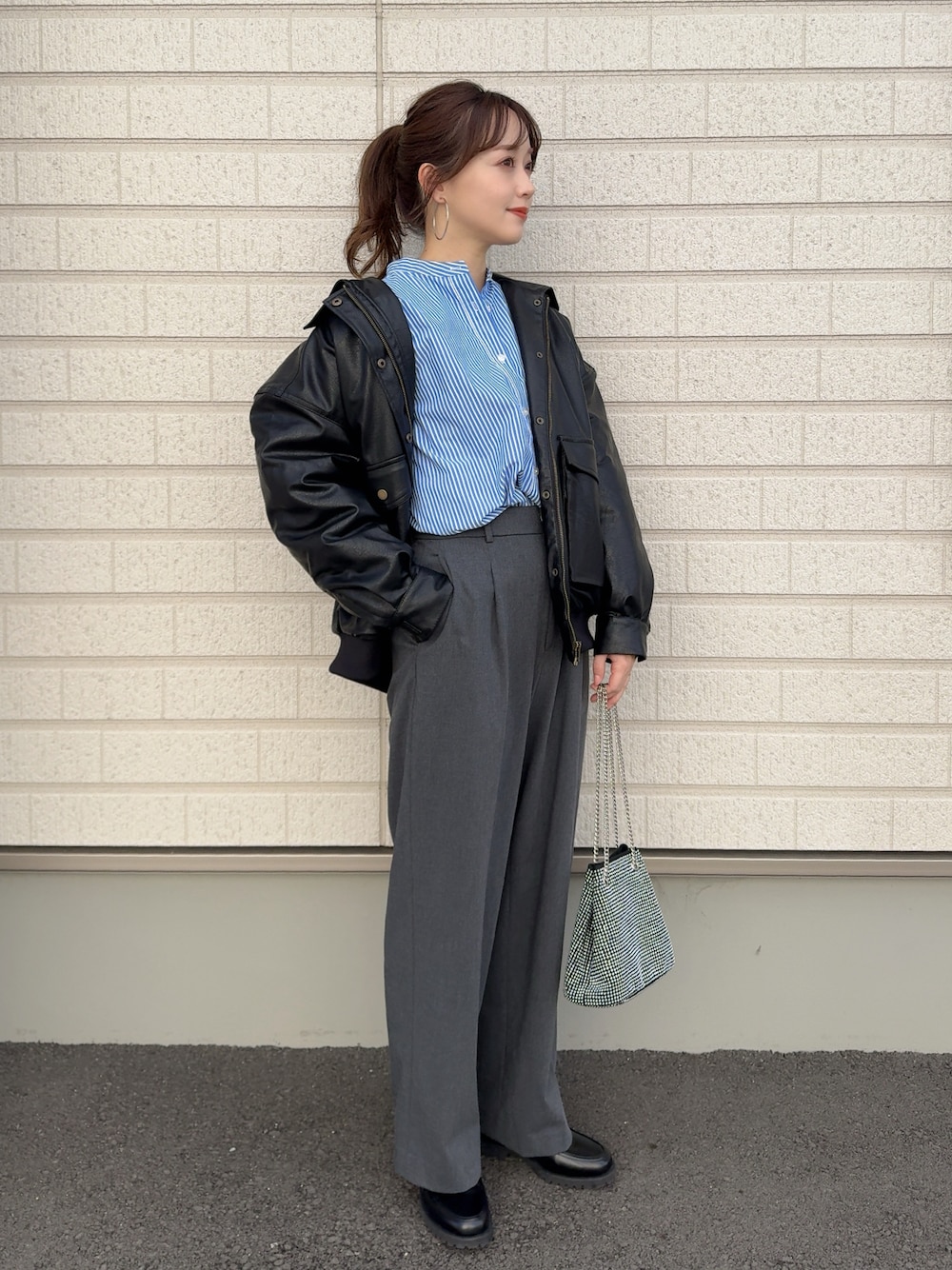 てらのシャツ/ブラウス「ソデボリュームストライプシャツLS 968592」を使ったコーディネート
