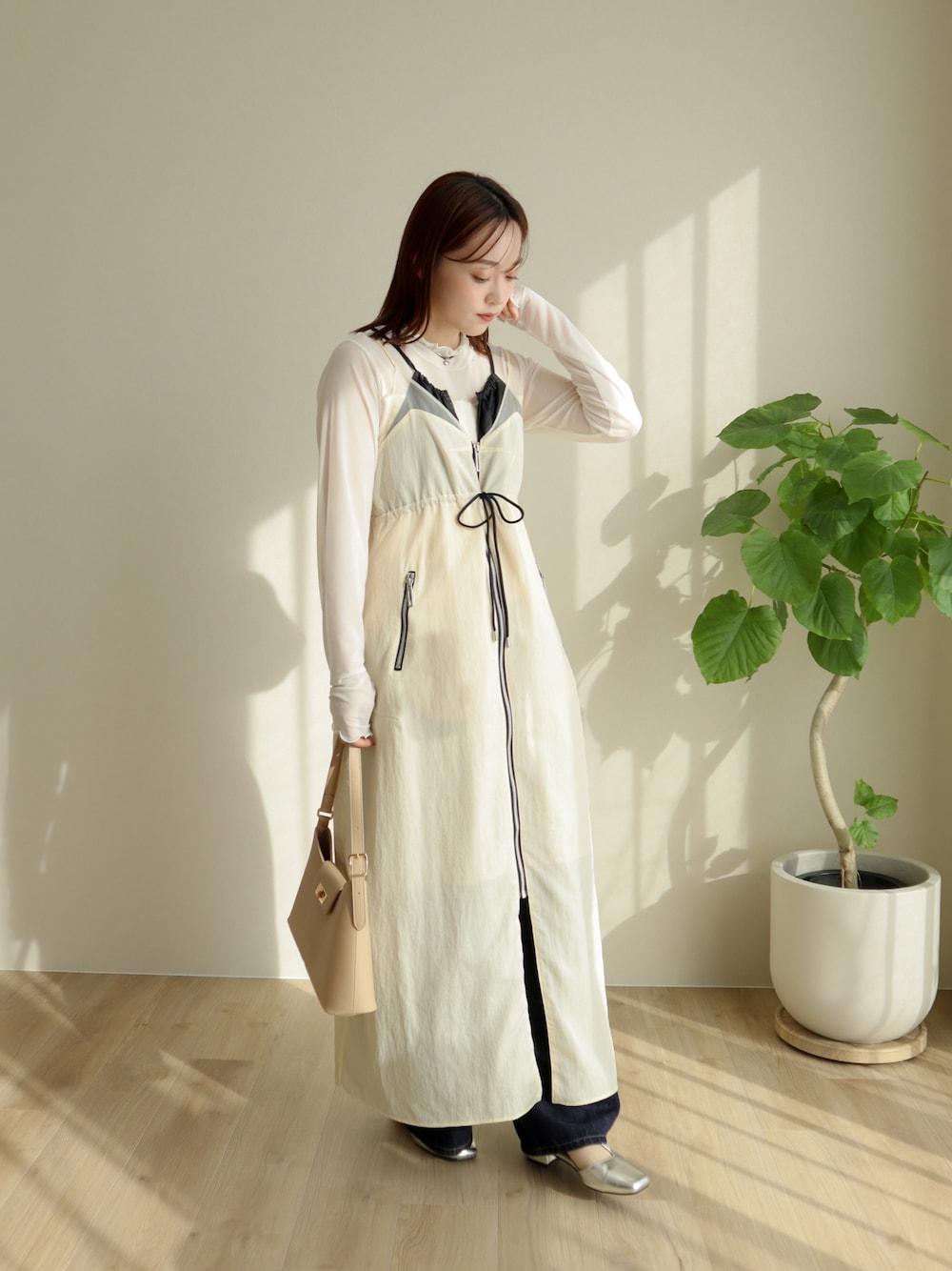 てらのジャンパースカート「バッククロスキャミワンピース」を使ったコーディネート