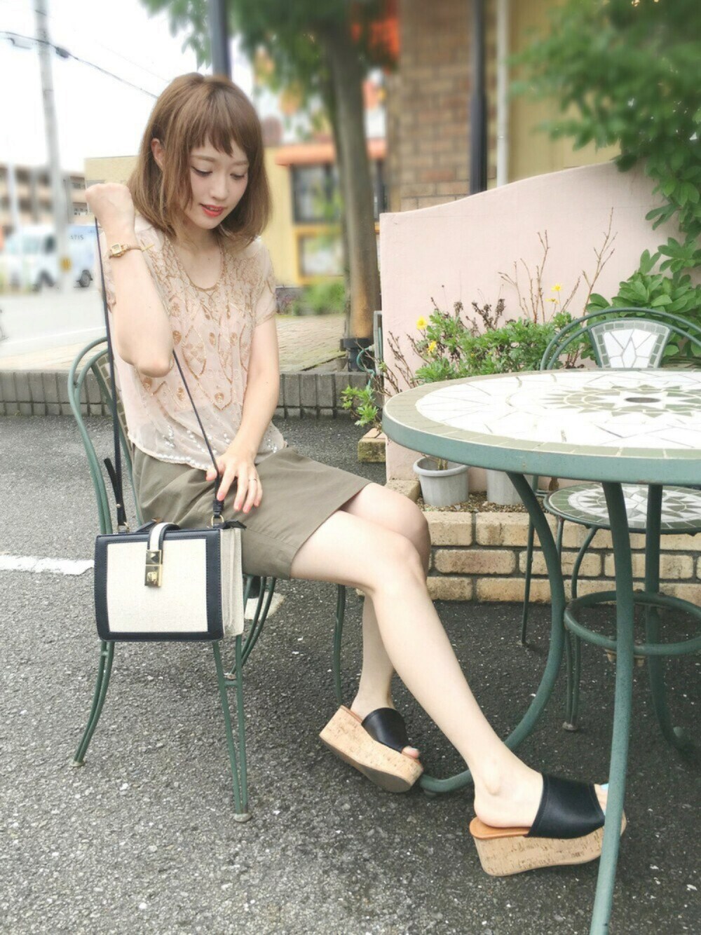 ベージュのキラキラ透けトップスにカーキスカート♡ ロペピクニックはきれいめアイテムが多いので意識してみました♡ 夫の職場の方々と家族ぐるみで飲んだり食べたり歌ったり。。楽しかったです🌸🌸 でも、もっとカジュアルでも全然大丈夫な感じやった😂😂笑 インスタもよろしくお願いします💕 →terawear