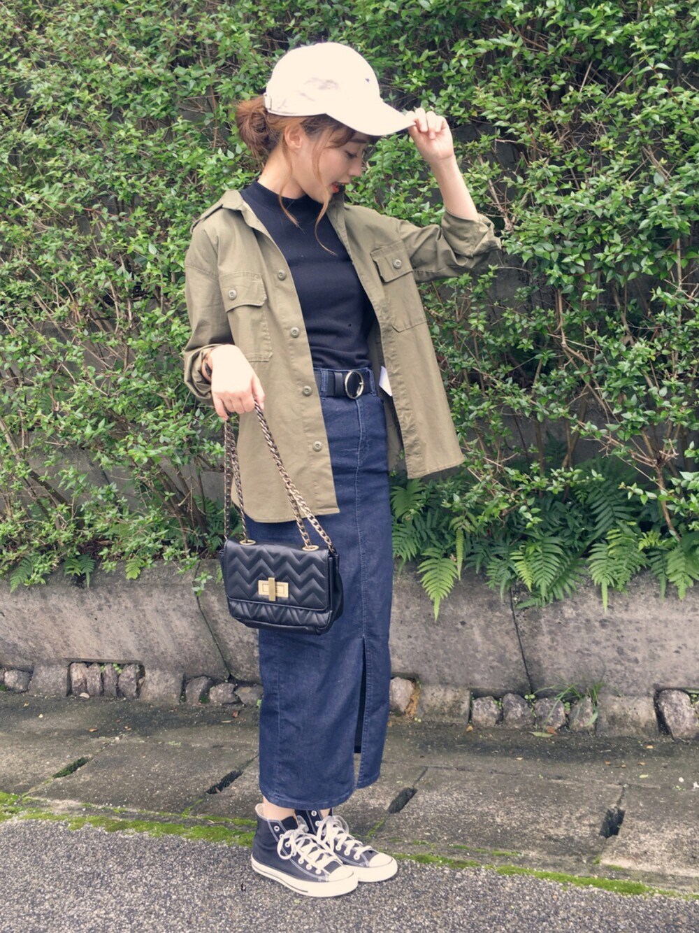 ミリジャケとタイトスカート♡ 色飛んじゃいましたがキャップはベージュ。 インスタもよろしくお願いいたします🙇💕 →terawear