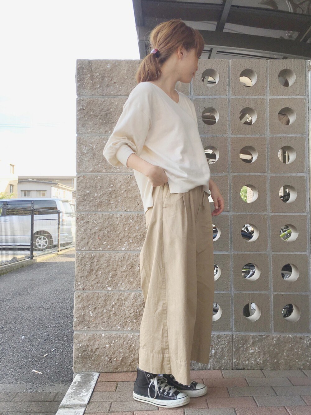 てらのニット/セーター「シンプルVネックプルオーバー」を使ったコーディネート