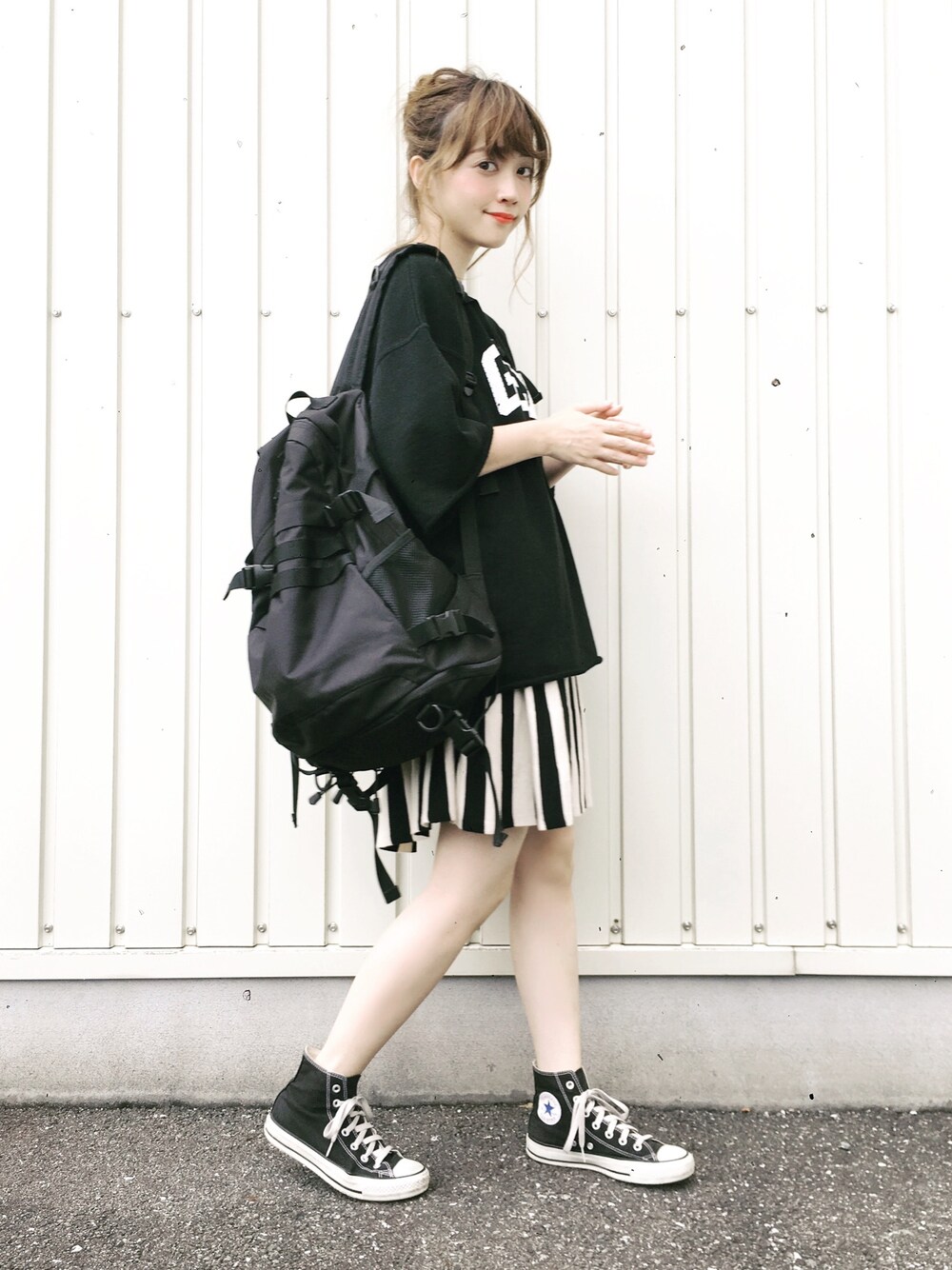 x-girlのスウェットトップスに古着のストライプスカートを合わせてモノトーンにしました♡ 元気におだんご。 インスタもやってます〜 →terawear