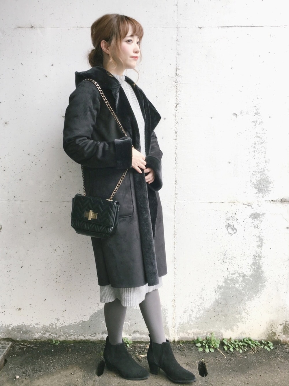 てらのムートンコート「フェイクムートンフードコート_#」を使ったコーディネート
