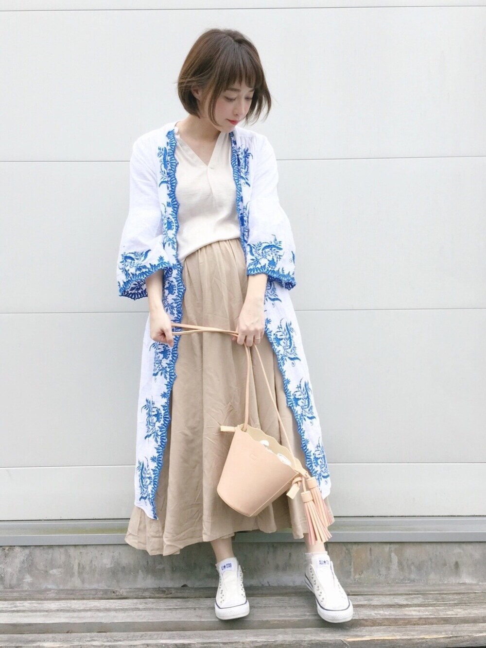 てらのワンピース「2wayスカラップ刺繍ガウン【高橋愛着用】」を使ったコーディネート