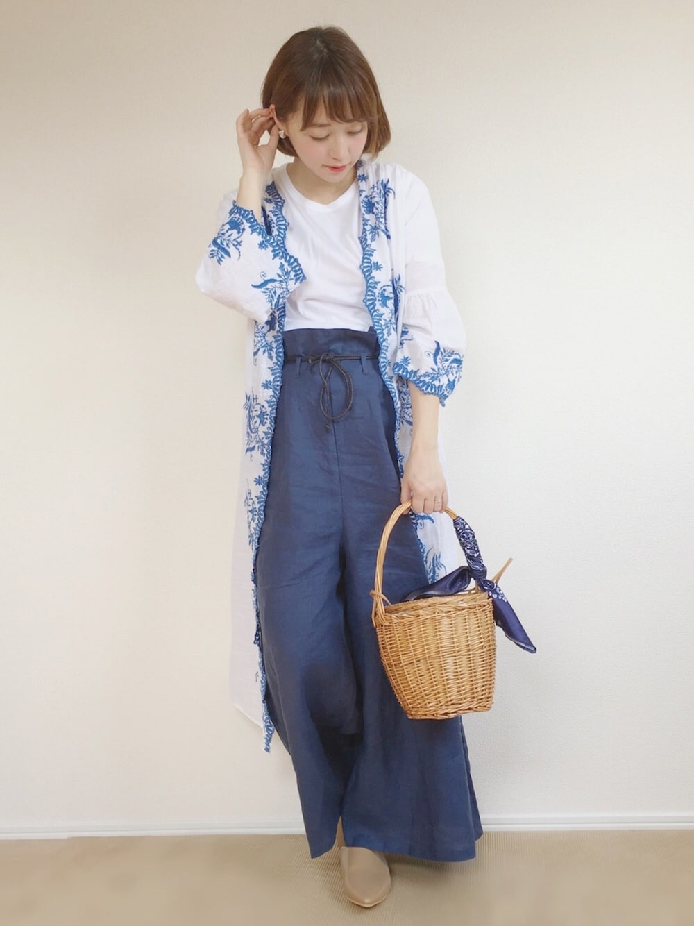 妊娠8ヶ月(28w) ブルー×ホワイト×カゴバック♡ インスタ→terawear ブログ→プロフィールからとべます!