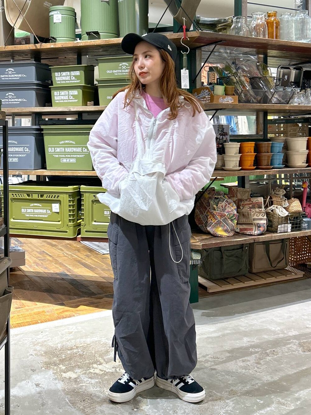 [てぃら出勤コーデ!] ▷アノラックパーカーのインナーをポイントに したかったのでボトムはシンプルに🙆🏻♀️ やりすぎない感じでカラーアイテムを取り入れたい方は こんな着こなしもおすすめ! """"""""""""""""""""""""""""""""""""""" ←てぃらインスタここから🫶🏻