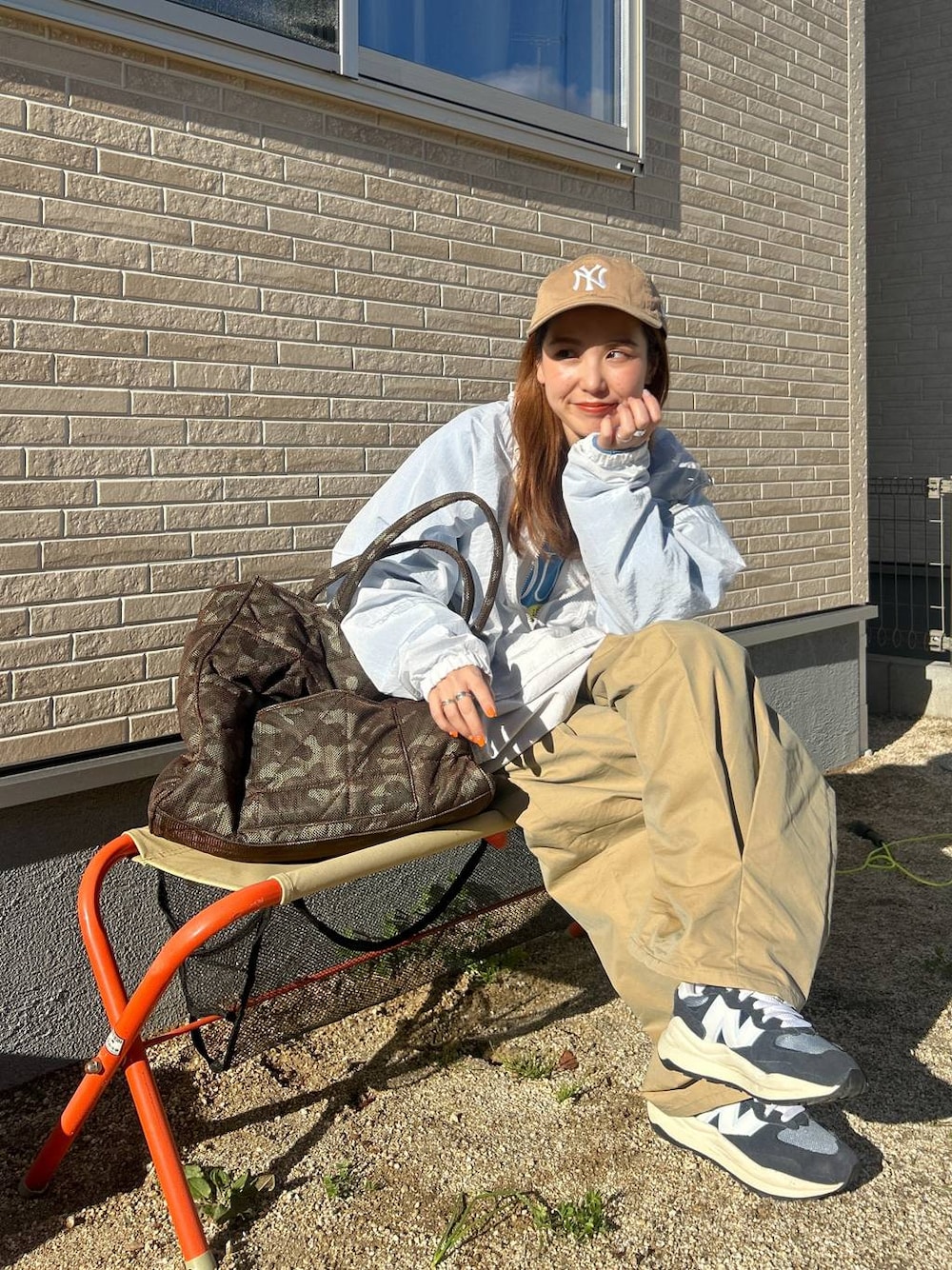 [休日コーデ] ▷全身ニコアンドな日🤭(いつも) てぃらトートはみんなチェックしてくれたかな? カモフラ柄は季節問わず使えるからほんとお気に入り〜! """"""""""""""""""""""""""""""""""""""" ←てぃらインスタここから🫶🏻