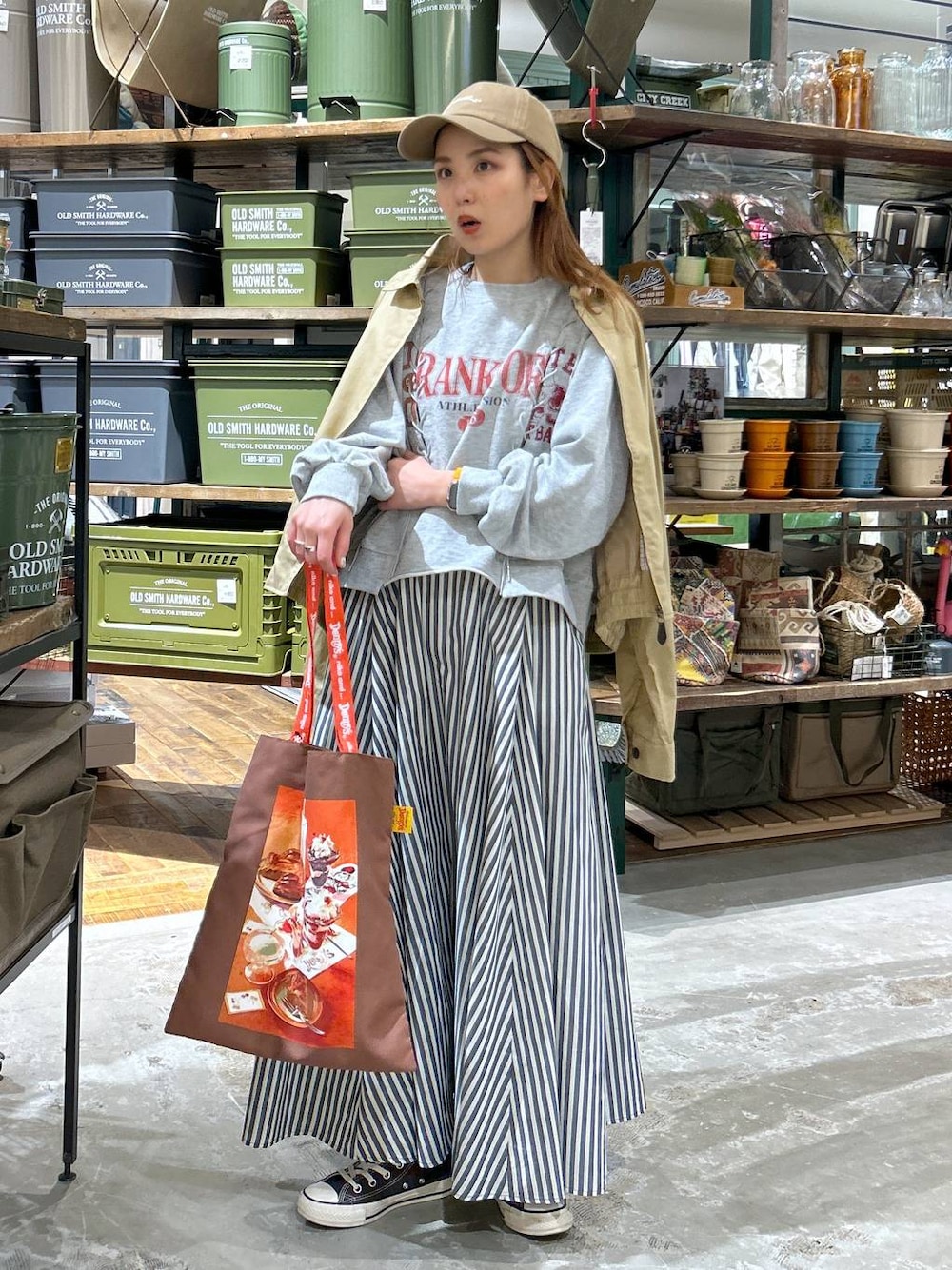 [フレンチカジュアルにピッタリのスカート] ▷春に着たくなるストライプ😘 乾きやすい生地なので梅雨時期も重宝間違いなし! サッと羽織れる軽アウターはお得になってます🉐 """"""""""""""""""""""""""""""""""""""" ←てぃらインスタここから🫶🏻