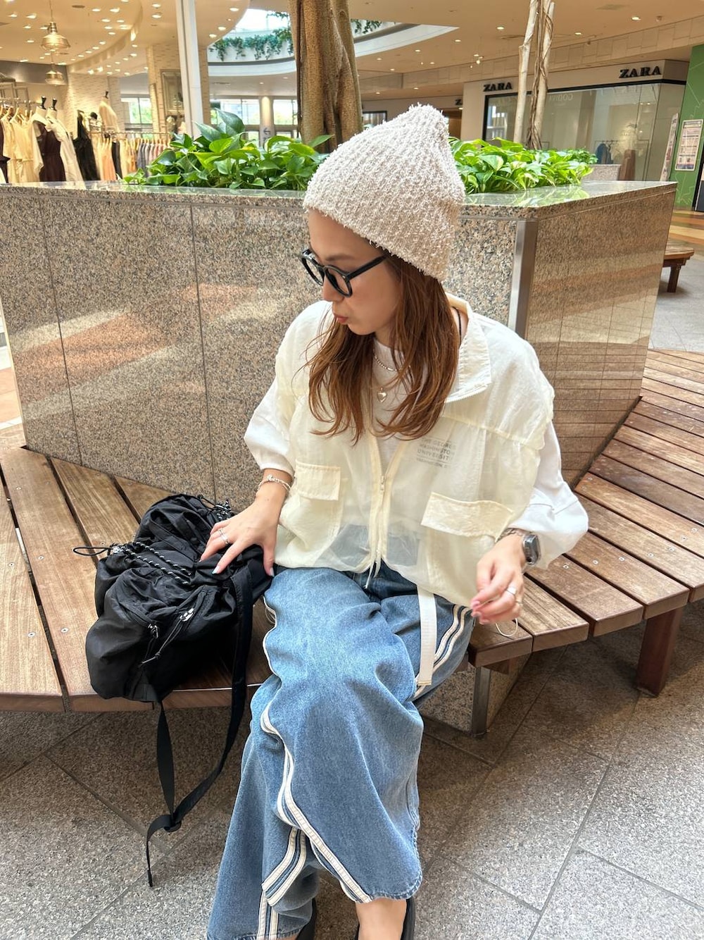 [てぃらリアルバイコーデ!] ▷私が買ったベストはアイボリーでした😎🔥 これから発売のランタンTとも相性⭕️ バッグプリントの透け感が可愛いのでぜひ真似してね🩷 """"""""""""""""""""""""""""""""""""""" ←ここから🌿