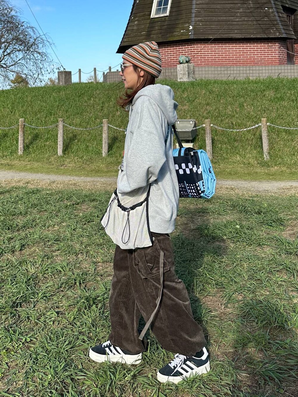 [公園コーデ!] ▷今日は上下メンズアイテム🙆🏻♀️❤️ ゆるっとメンズライクに✌🏻 だいぶ風が冷たくなってきたからパーカーがちょうどよかった〜! """""""""""""""""""""""""""""""""""""" ←ここから🌿
