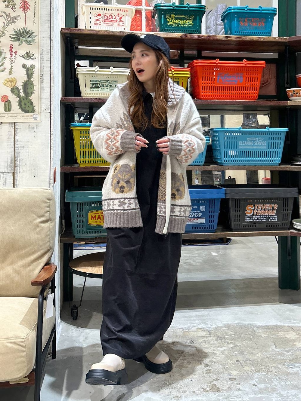 [てぃらんだが大活躍する季節になってきた〜😛] ▷気温も下がってきた今、アニマルカウチンが便利😍 シンプルなアイテムに羽織るだけでグッと季節感増し増し🤍 """"""""""""""""""""""""""""""""""""""" ←ここから🌿