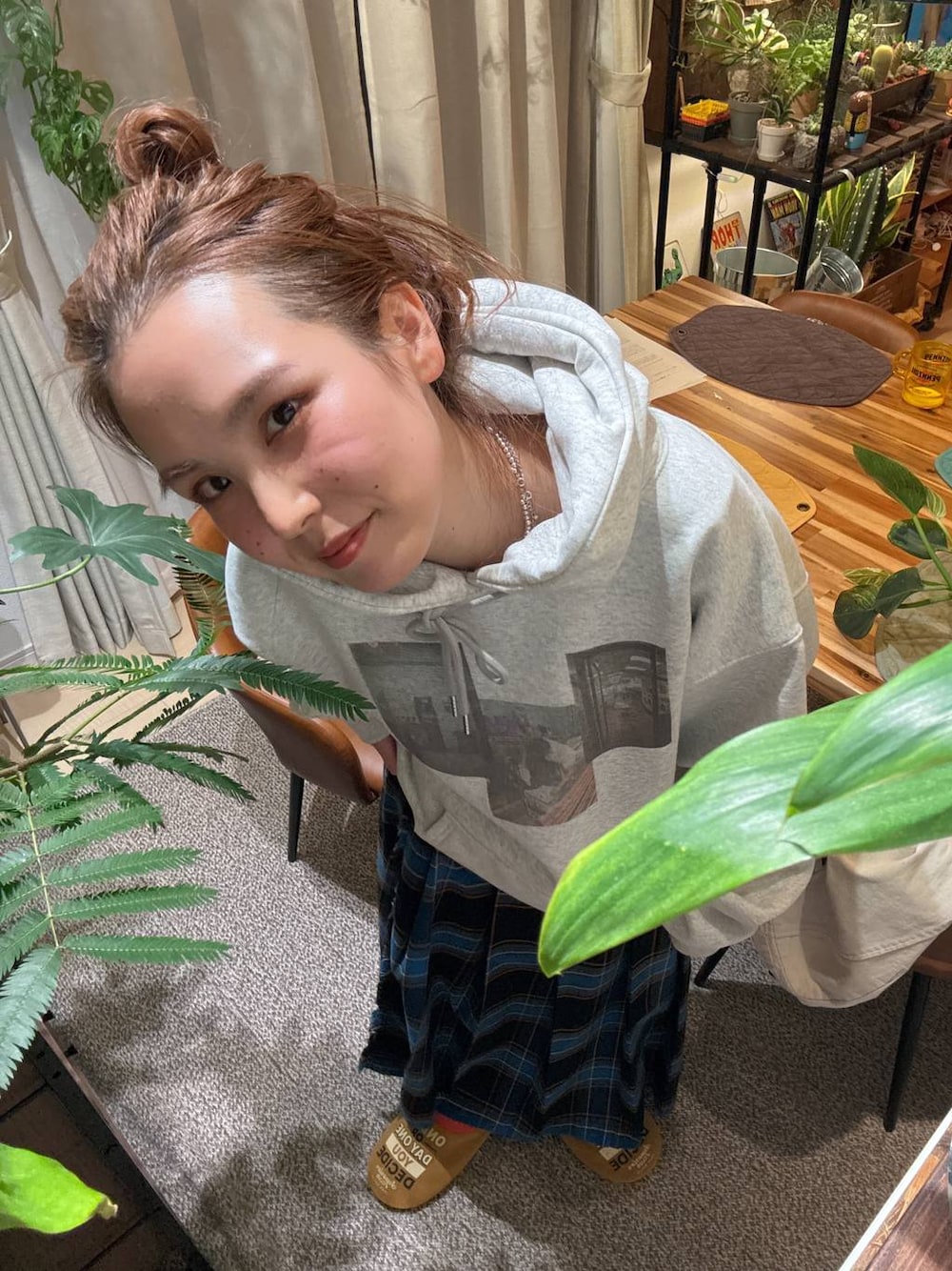 [Newフーディーチェックした?] ▷リアルに気に入りすぎてなかなか撮影できなかったフーディーきて急遽撮りました🥰 この合わせで最近は着ました💓 スカートはセールのやつ🥴 """"""""""""""""""""""""""""""""""""""" ←ここから🌿