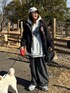 [お気に入りのフーディー] ▷これはニコアンドの雑貨シリーズのランドロのウェア🩷 男女問わずに着れるプリントデザインと 柔らかい裏起毛で休日についつい着てしまうー! パンツ、アウターは去年のアイテムです! """"""""""""""""""""""""""""""""""""""" ←ここから🌿