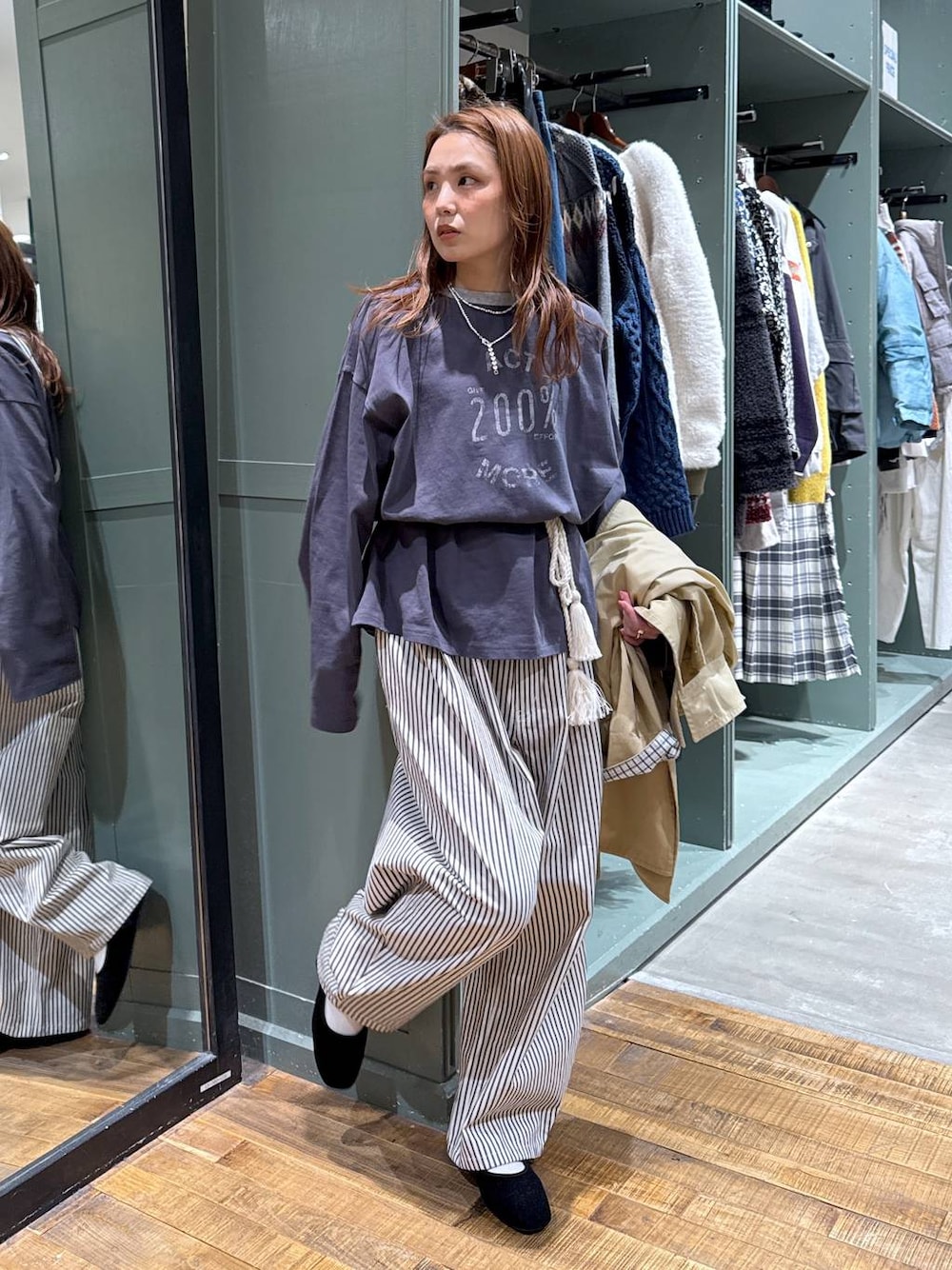 [マリンパンツをオトナマリンに着こなしてみた] ▷こんな感じでロープベルトをウエストマークに使うのもアリ🩷ウエスト位置がグッと上がるので低身長でもスタイルアップ効果◎! 使うトップスはカジュアルにして 決めすぎないのがてぃら流😇 """"""""""""""""""""""""""""""""""""""" ←ここから🌿