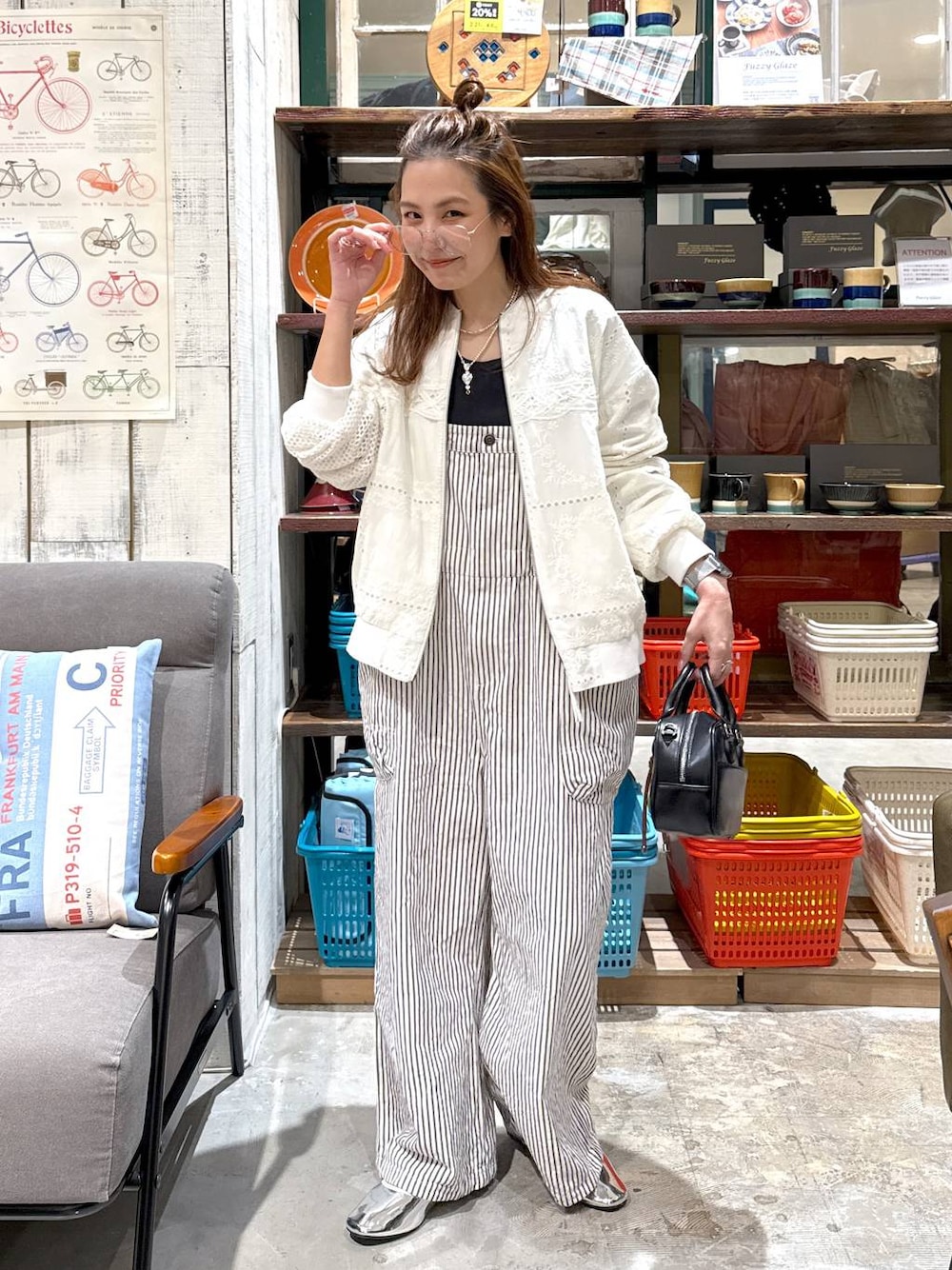 [てぃらサロペオトナかわいく🤍🤍] ▷レースブルゾンを上から羽織って女子度アゲェ🙆🏻♀️ インナーはブラックにして引き締めました😇 メンズライクだけでなくいろんなコーデで着回せますよー! """"""""""""""""""""""""""""""""""""""" ←ここから🌿