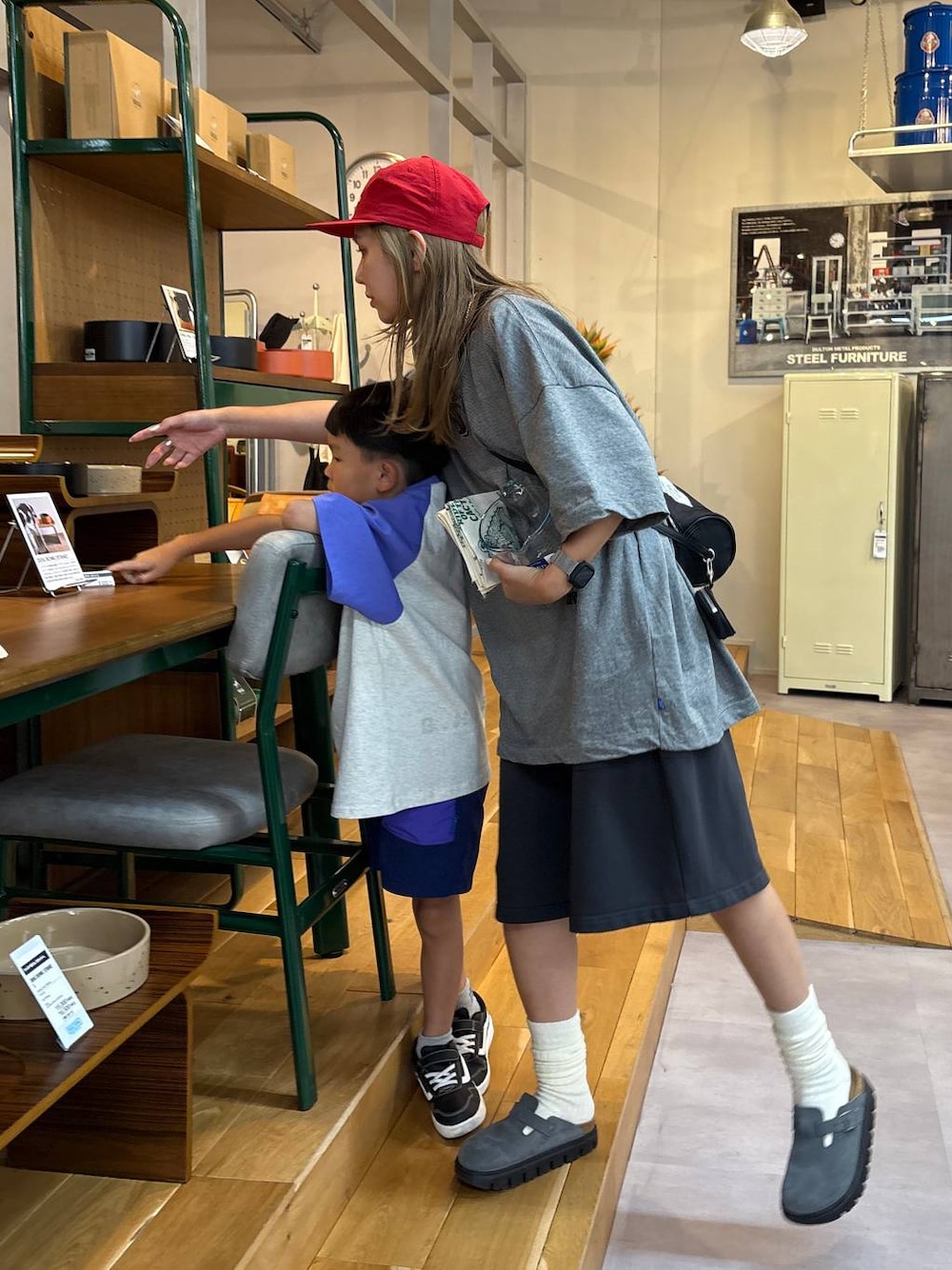 [今日の休日コーデ] ▷てぃらパンツをハーフパンツで履きました! ゆるっと大きめのTeeで合わせて、キャップで目線を上に上げるのがおすすめの着こなしです! 次男のコーデも一緒に紐付けしておきます🩷 """"""""""""""""""""""""""""""""""""""" ←ここから🌿