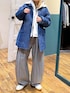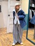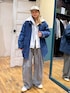 [ブルー✖️グレー🩶💙] ▷冬でもデニムは着たい!そんな時はメイクスタッフのアウターが使えるヨ〜😘中綿がしっかり入っているので見た目以上に暖かい! インナーはグレーワントーンにしてデニムが映えるコーデに👅