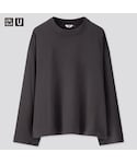 UNIQLO U 20ss レディースのスウェットボクシークルーネックシャツ。色はダークグレーでサイズはXL。 身幅広め、アーム太めのシルエットでメンズでもレディースでもかわいいと思います。