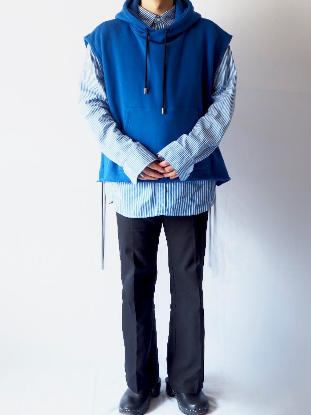 RYO TAKASHIMAのフーディーベストを使ったレイヤードスタイルです。 これからの季節活躍すること間違いなしです!