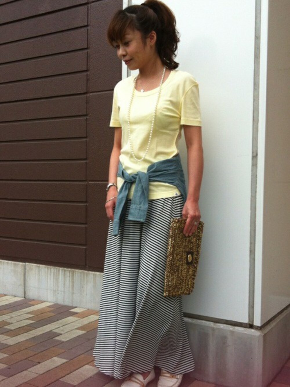 よっぽど気に入ってしまい、先週に引き続きUVカットTシャツ登場です(笑) デニムシャツを腰巻きしてみたので羽織として、初秋にもできるコーデにしてみました♪( ´▽`) 私もお買い物へ行くと9月や10月に着回しできるアイテム見ちゃいますねー‼︎ ではでは、まだまだ暑い夏をおしゃれして楽しく過ごしたいですね。
